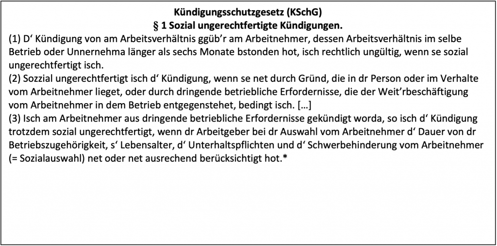 Das „schwer verständlich“ suggerieren hier schon den Schülerinnen und Schülern, dass das Verstehen von Amts- und Rechtssprache für sie wahrscheinlich eine Herausforderung ist/sein wird. Nur was macht das mit einem Schüler oder Schülerin? Leistungsmotivierte Schülerinnen und Schüler könnten sich bei der „Ehre gepackt“ fühlen und nun erst recht einen Gesetzestext in Umgangssprache umschreiben. Nun ist dieses Schulbuch für Baden-Württemberg zugelassen, also könnte ein:e schwäbische:r Schüler:in nun folgendes ins Heft schreiben. Ob eine solche Lösung nun als sinnvoll erachtet werden kann, wäre ein weiteres Fundstück wert: